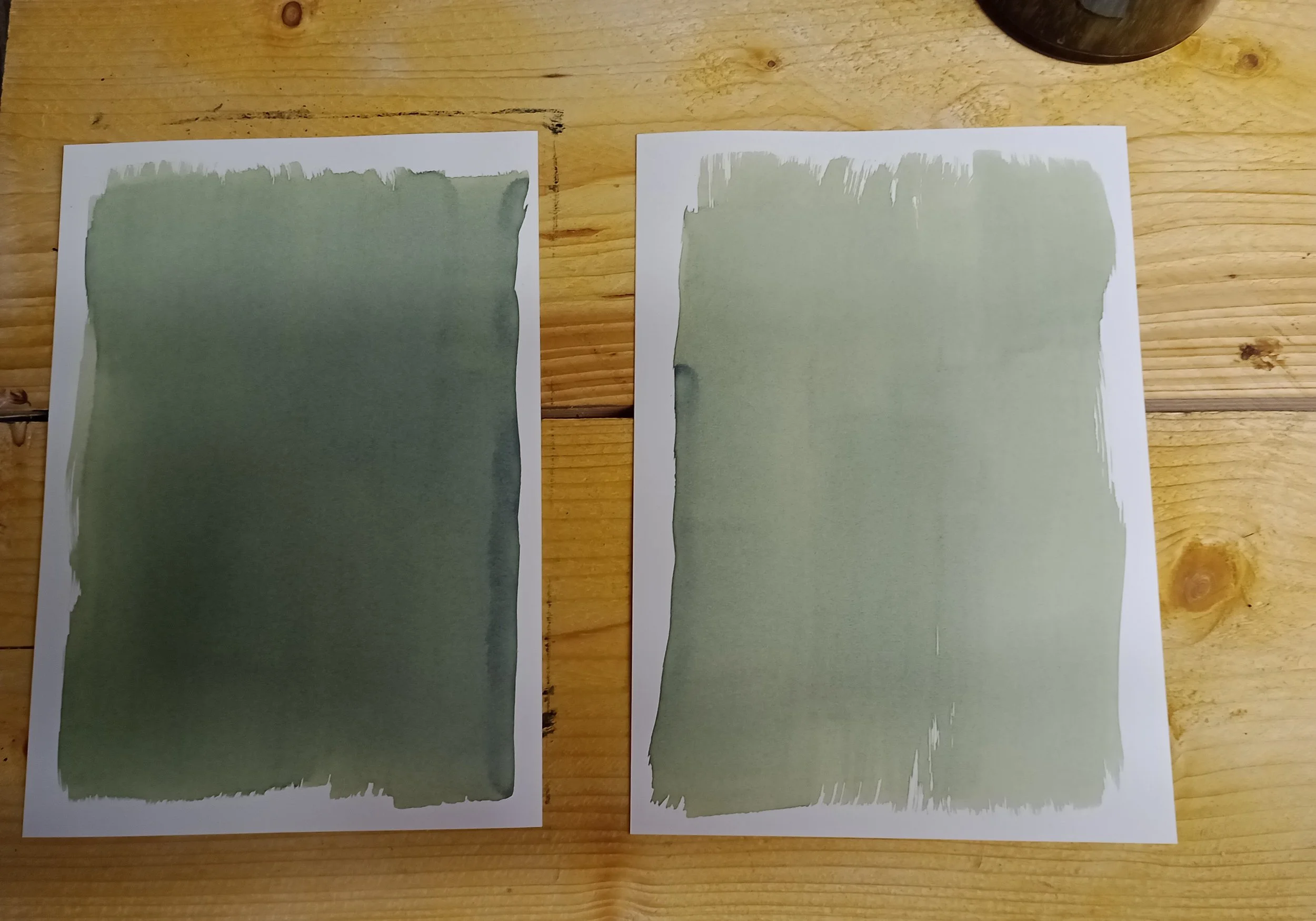 I then prepare the paper. I hand-paint the solution onto the archival paper so that the brush strokes are visible in the final composition. I leave the paper to dry in my workshop overnight. My workshop has no windows and no natural light, so it is ideal. It is important not to expose the paper to UV light. I typically prepare 20-30 sheets of paper at a time. I then store them in a light-proof bag until I am ready to use or until the sun comes out!